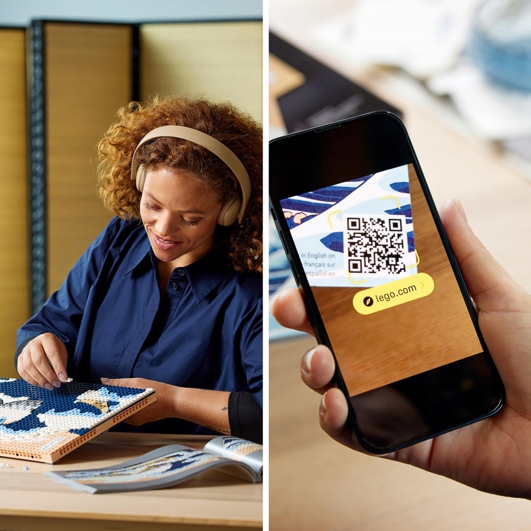 Odtwórz „Wielką falę” Hokusaia z klocków LEGO i stwórz słynne, wielowymiarowe dzieło. Podczas budowania tej luksusowej ozdoby zeskanuj kod QR i posłuchaj ścieżki dźwiękowej dopasowanej do zestawu, która umili doświadczenie budowania. Zakończ projekt dekoracyjną płytką z podpisem Hokusaia i z dumą powieś całość na ścianie.