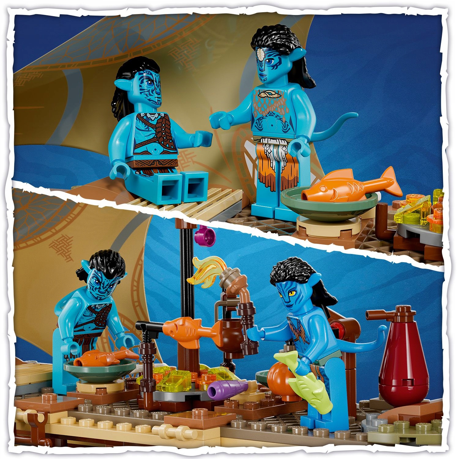 - Co jest w pudełku? – Zestaw zawiera dom klanu Metkayina z elementami z filmu „Avatar: Istota wody”, a także łódź, scenerię pandoriańskiej rafy i minifigurki Neytiri, Kiri, Ronal i Tonowariego