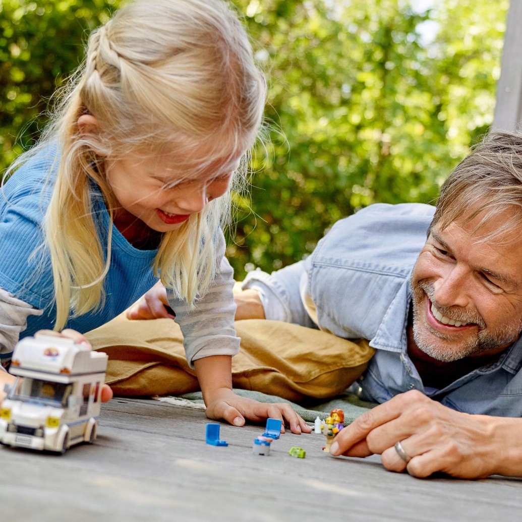 Wakacyjny kamper LEGO® City (60283) zabierze dzieci w podróż po krainie wyobraźni. Zabawkowy samochód kryje w sobie mnóstwo detali inspirujących do zabawy — jest tam na przykład wyposażenie wnętrza z kuchenką i miejscami do spania. W pudełku są też postacie mamy, taty i dziecka, więc rodzinne przygody mogą trwać bez końca.