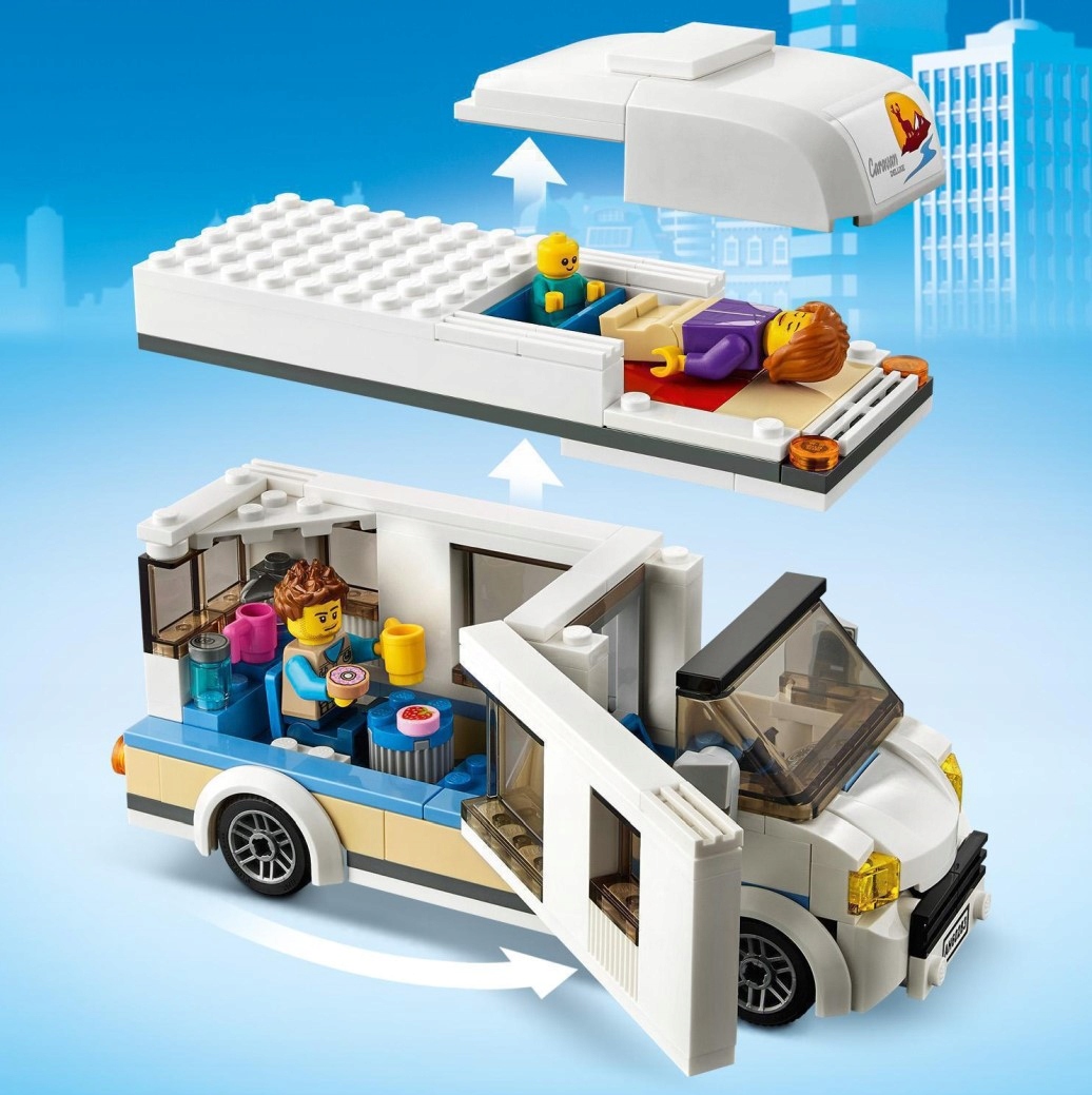 Zestaw LEGO® City Wakacyjny kamper pozwoli dzieciom udać się w podróż wszędzie tam, dokąd zaprowadzi je wyobraźnia.