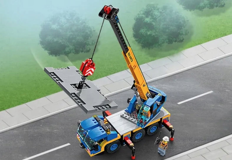 - Zestaw z maszyną budowlaną — budowanie miasta LEGO® City jest teraz jeszcze fajniejsze dzięki zabawkowemu żurawiowi samochodowemu, który wyposażony jest w dużo autentycznych funkcji zapewniających długie godziny pomysłowej zabawy