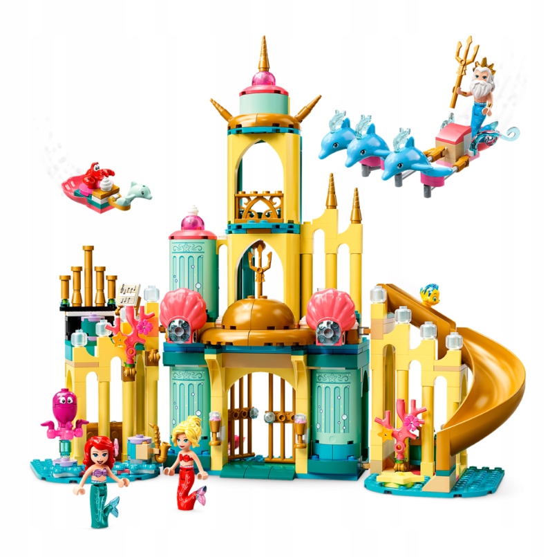 W zestawie dzieci mogą pobawić się minilaleczkami: Arielką, Aristą i królem Trytonem, a także figurkami LEGO Sebastiana, Florka i czterech delfinów. Całość jest imponującym prezentem dla każdego wielbiciela serii księżniczek Disneya.
