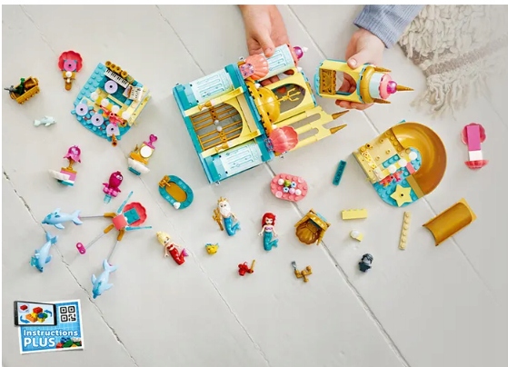 Sześcioletni i starsi fani filmu „Mała syrenka” Disneya będą zachwyceni zestawem LEGO® ǀ Disney Podwodny pałac Arielki (43207). Zestaw zawiera pałac do zbudowania, trzy minilaleczki i sześć figurek LEGO zwierząt. W darmowej aplikacji Instrukcje budowania LEGO znajdziesz również interaktywne cyfrowe instrukcje budowania, dzięki którym zabawa jest jeszcze lepsza. Te intuicyjne narzędzia pozwalają dzieciom wizualizować powstający model.