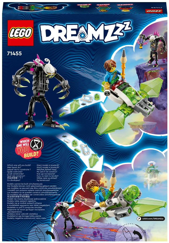 Podczas zabawy zestawem LEGO® DREAMZzz™ Klatkoszmarnik (71455) dzieci w wieku od siedmiu lat walczą z potworem z koszmaru. Oparty na akcji z serialu „DREAMZzz” zestaw pozwala dzieciom zbudować nikczemnego Klatkoszmarnika, a następnie pomóc Mateo i Z-Blobowi uratować ich przyjaciela Coopera ze szponów potwora, zanim zabierze go do Króla Koszmarów.