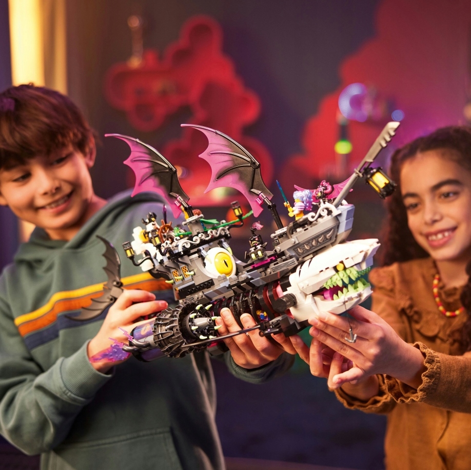 - Zbuduj pojazd na dwa sposoby — dzięki zestawowi LEGO® DREAMZzz™ Koszmarny rekinokręt (71469), który jest oparty na serialu telewizyjnym, dzieci mogą zbudować szczegółowy pojazd