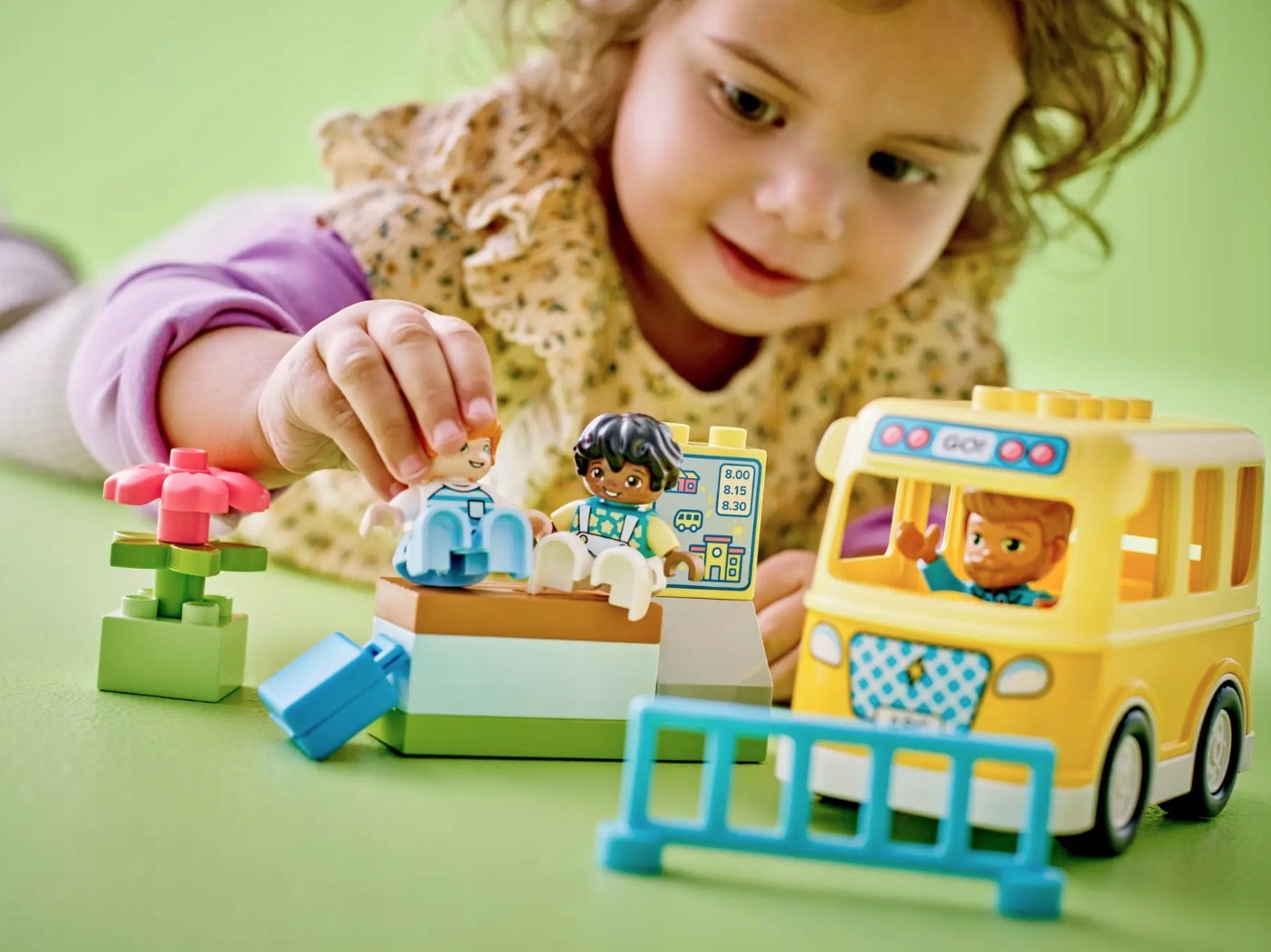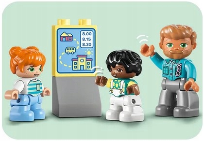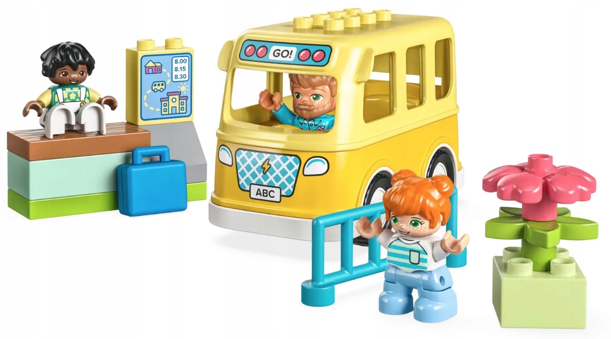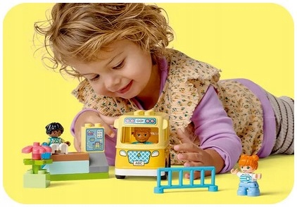 Zestawy LEGO DUPLO zawierają różnorodne postacie, dzięki czemu dzieci mogą bawić się w nawiązywanie przyjaźni. Rozwijają przy tym umiejętności motoryczne, otwierając dach szkolnego autobusu i umieszczając figurki w środku. Postacie stoją za ogrodzeniem, gdy podjeżdża autobus, co pomaga przedszkolakom nauczyć się, jak zachowywać się w ruchu ulicznym. Podobnie jak wszystkie zabawki dla maluchów LEGO DUPLO, ten zestaw zapewnia dzieciom swobodną zabawę, wyrażanie siebie i radosne odkrywanie.