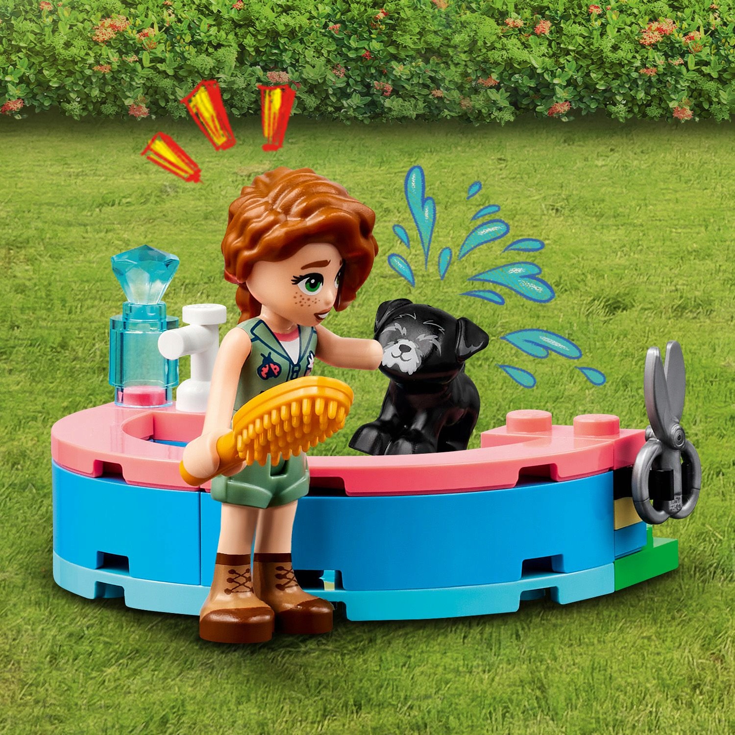 - Trzy minilaleczki, trzy psy i akcesoria – zestaw zawiera postacie LEGO® Friends: Autumn, Zaca i dr Gabrielę Silvę, a także postacie psów Pickle’a, Dasha i Grace oraz wiele akcesoriów dla zwierząt