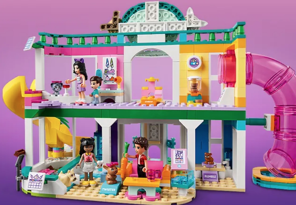 - Podarunek dla miłośników zwierząt — zestaw LEGO® Friends Hotel dla zwierzątek (41718) oferuje długie godziny kreatywnej zabawy w szkolenie zwierzątek i spędzanie czasu z przyjaciółmi