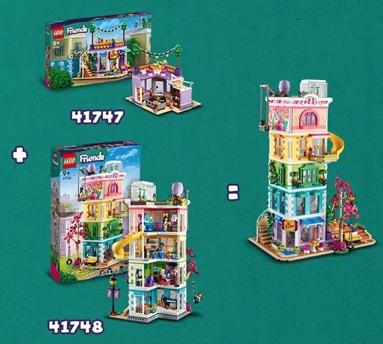 - Zabawa w budowanie — ten zestaw można połączyć z zestawem LEGO® Friends Dom kultury w Heartlake 41748 (sprzedawanym oddzielnie), aby stworzyć niekończące się możliwości zabawy inspirowane przyjaźniami wśród społeczności