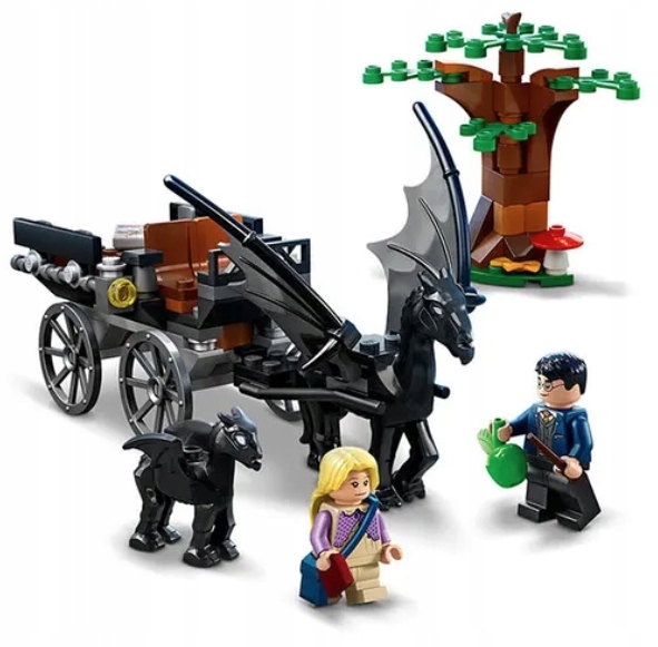 - Kultowe postacie — w komplecie minifigurki Harry’ego Pottera™ i Luny Lovegood™, figurki dorosłego i małego testrala oraz kareta do zbudowania, do której można zaprząc dorosłego testrala