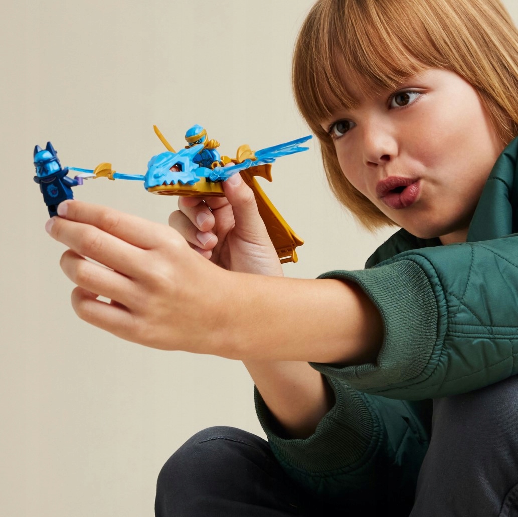 Pełna akcji zabawka ze smokiem — chłopcy i dziewczynki w wieku od sześciu lat mogą rozgrywać bitwy z drugiego sezonu serialu telewizyjnego NINJAGO® Powstanie smoków ze smokiem Nyi do zbudowania