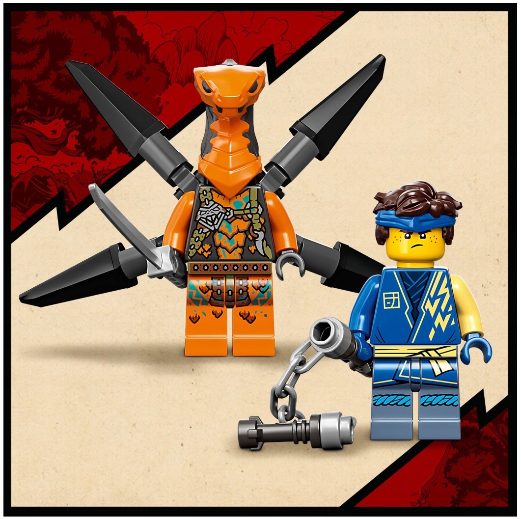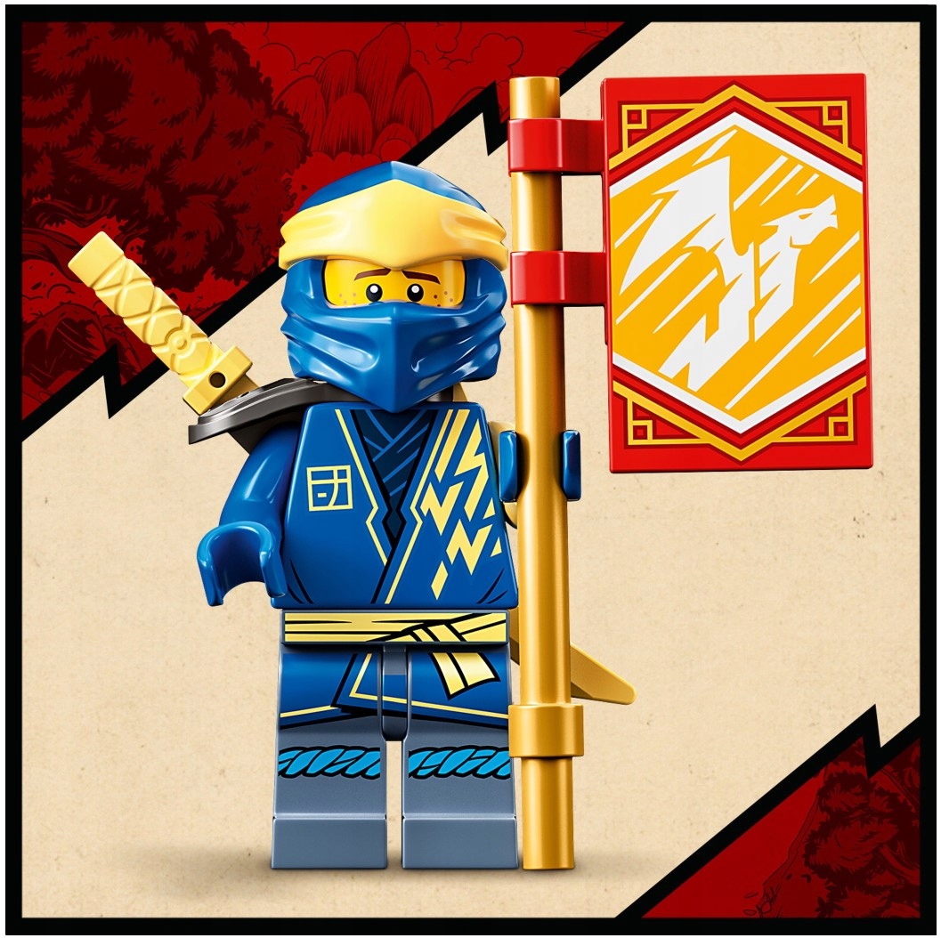 Zestaw konstrukcyjny zawiera dwie minifigurki: Jaya uzbrojonego w nunczako i miecz, a także latającą żmiję z plecakiem odrzutowym i mieczem. Postacie umożliwiają odgrywanie niesamowitych starć. Gdy dzieci pokonają przeciwników i ukończą pierwszą misję, w nagrodę otrzymają będący nowością na styczeń 2022 roku kolekcjonerski sztandar.