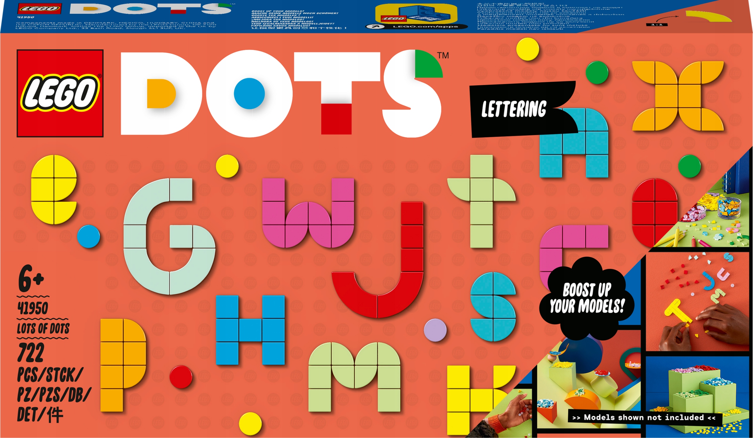 M?odzi mi?o?nicy najnowszych trend?w i wielbiciele r?kodzie?a b?d? zachwyceni zestawem LEGO? DOTS Rozmaito?ci DOTS ? literki (41950). Pakiet przeznaczony jest do zabawy w po??czeniu z tablicami og?osze? DOTS albo innymi zestawami LEGO lub DOTS (sprzedawanymi oddzielnie). Dzi?ki p?ytkom z tego zestawu sze?cioletnie i starsze dzieci mog? tworzy? w?asne napisy i ozdabia? swoje zabawki na nowe sposoby, a tak?e zmienia? wzory w zale?no?ci od swoich zainteresowa?, humoru albo wystroju pomieszczenia.