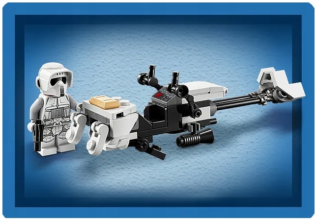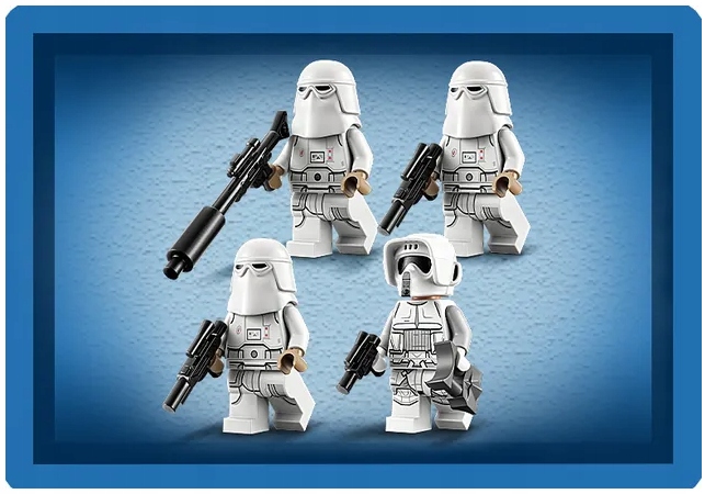 - Cztery minifigurki LEGO® — Zwiadowca szturmowców z Hoth oraz trzech szturmowców śnieżnych. W komplecie są też dwa działa blasterowe, jeden karabin blasterowy i jeden pistolet blasterowy