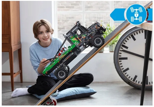 Miłośnicy zabawkowych modeli potężnych ciężarówek i fani zabawek konstrukcyjnych będą się świetnie bawić, budując model LEGO® Technic ciężarówki Mercedes-Benz Zetros z napędem na cztery koła z zestawu 42129. Ciężarówka jest bogata w realistyczne funkcje i stanowi wciągające wyzwanie konstruktorskie dla dorosłych i dzieci od 12. roku życia. Otwórz drzwi do kabiny i maskę. Przyjrzyj się działającemu zawieszeniu wszystkich czterech kół i otwórz klapę serwisową, aby spojrzeć na skrzynię biegów. Model jest wyposażony w szczegółowy silnik z obrotowym wentylatorem chłodnicy. To również pierwszy model LEGO Technic z blokadą mechanizmu różnicowego. Włączaj i wyłączaj blokadę za pomocą aplikacji, aby sterować ciężarówką w trudnym terenie.