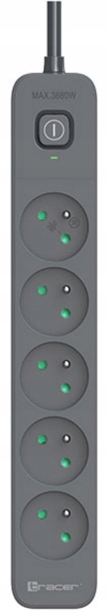 Listwa zasilająca Tracer Power Line+ 1.8m 5 gniazd Wyłącznik Grafitowa