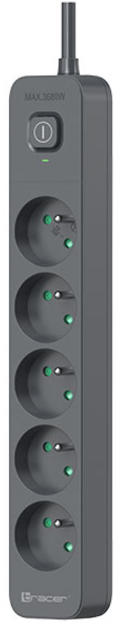 Tracer Power Line+ to listwa wysokiej jakości z funkcją ochrony przeciwprzepięciowej, które zapewnia bezpieczne zasilanie dla sprzętu elektronicznego