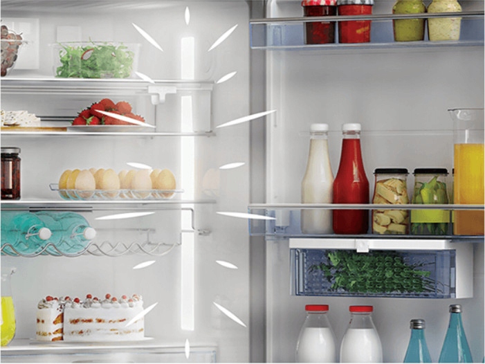 Jeśli drzwi lodówki pozostaną dłużej otwarte, uruchomi się sygnał dźwiękowy, który będzie aktywny aż do ich zamknięcia. Ogranicza to wzrost temperatury wewnętrznej oraz zużycia energii.