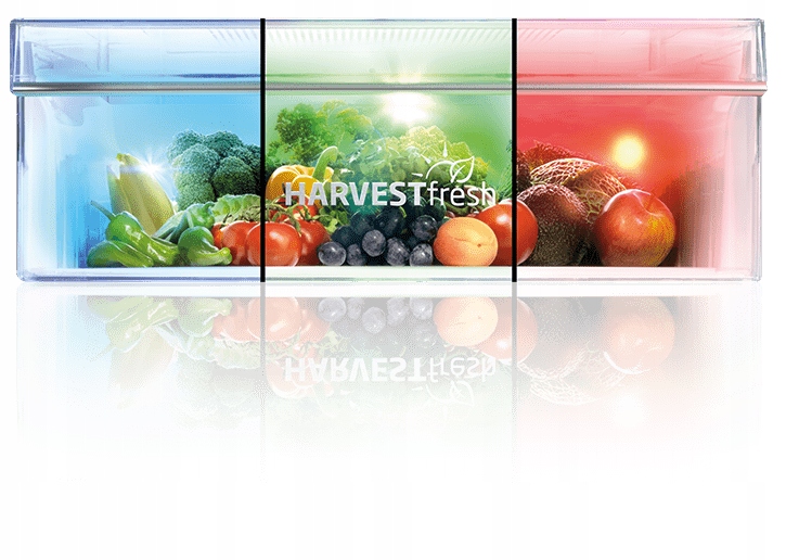 Tryb świetlny komory HarvestFresh™ naśladuje dobowy cykl światła słonecznego i ciemności. Utrzymuje to naturalne procesy w owocach i warzywach, dzięki czemu zachowują więcej witamin i smaku, niż gdyby były przechowywane tylko w ciemności. Przechowywane owoce i warzywa nie psują się tak szybko, ich świeżość utrzymuje się dłużej, co ułatwia rzadsze zakupy.
