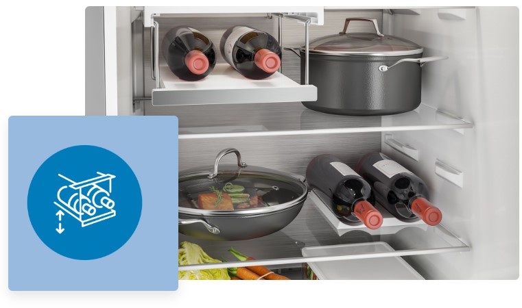 Spożywanie dużej ilości płynów to jeden z kluczowych elementów zdrowego stylu życia. Z drugiej strony w lodówce może być trudno znaleźć miejsce do przechowywania wszystkich napojów. Teraz lodówki Beko mają modułowe rozwiązanie do łatwego przechowywania butelek w dowolnym miejscu na półce. Składana półka na butelki BottleFlex umożliwia jednoczesne przechowywanie dwóch 1,5-litrowych butelek. Kiedy nie masz butelek do przechowywania, półkę można z łatwością złożyć, aby uzyskać więcej miejsca. BottleFlex można też przesuwać, umieszczając w dowolnym miejscu półki. Nasza lodówka dostosuje się do Twoich potrzeb!