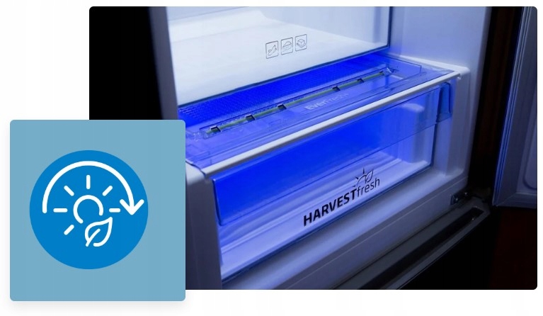 Jest to innowacyjna technologia 3 kolorów, dzięki której możemy na dłużej zachować witaminy A i C w przechowywanych warzywach i owocach. Dzięki temu nasze produkty zachowają świeżość na dłużej. W dedykowanej szufladzie HarvestFresh imitowany jest 24-godzinny cykl słońca za pomocą światła w kolorach niebieskim, zielonym i czerwonym.