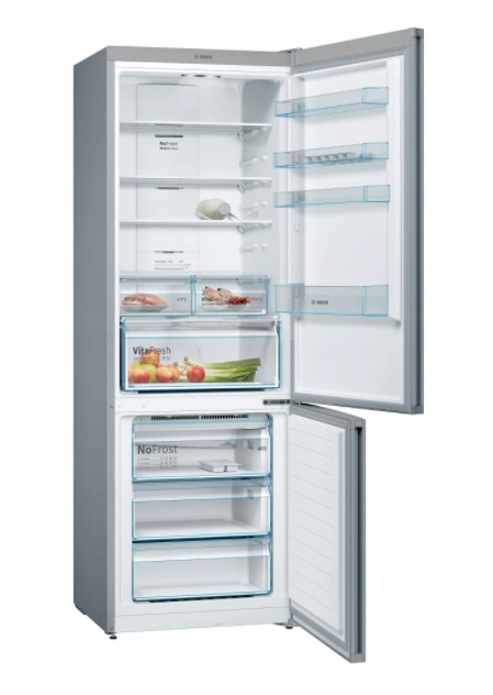 Lodówka Bosch KGN 49XLEA w kolorze inox, wysokości 203cm i szerokości 70cm. Z funkcją No Frost i komorą VitaFresh, która zachowa produkty żywnościowe dłużej świeże.