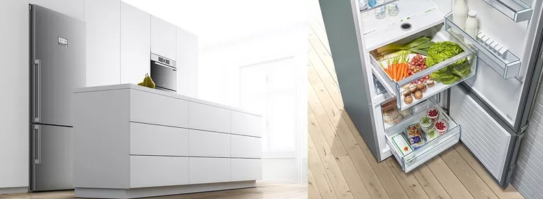 Doskonały wybór dla dużych rodzin i zwolenników porządku w chłodziarce.Ekstra duża chłodziarko-zamrażarka marki Bosch to idealne rozwiązanie dla każdego, kto potrzebuje dużo miejsca na perfekcyjne przechowywanie żywności. Większe wnętrze ułatwia lokalizowanie produktów i zapewnia maksymalną elastyczność. Ponadto chłodziarko-zamrażarki marki Bosch w rozmiarze XXL mogą być umieszczane we wnękach oraz stawiane bezpośrednio przy ścianach.