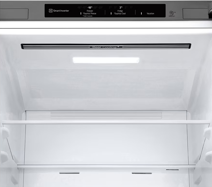 Technologia DoorCooling+(tm) zapewnia szybsze chłodzenie. Zimne powietrze jest równomiernie rozprowadzane najpierw wzdłuż drzwi, tam gdzie powietrze po otwarciu lodówki nagrzewa się najszybciej. Dzięki temu przechowywane napoje są chłodniejsze, a przechowana żywność swieża na dłużej.