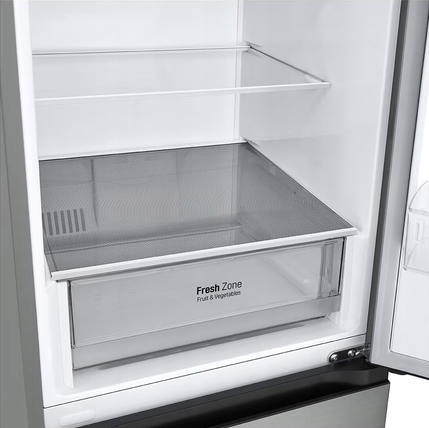 Lodówka dwudrzwiowa LG GBV21L0EPY o pojemności 344 litrów z technologią Total No Frost zapewnia równomierne chłodzenie i zapobiega osadzaniu się szronu. Funkcja DoorCooling+ szybko schładza wnętrze, a elegancka konstrukcja o szerokości 60 cm doskonale pasuje do nowoczesnych kuchni.