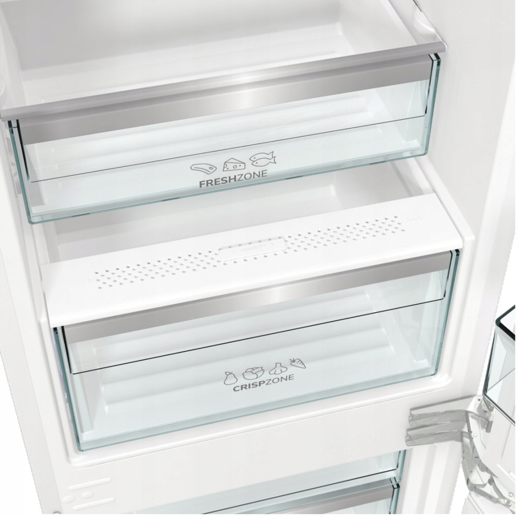 Przestronna szuflada CrispZone, wyposażona w teleskopowe szyny ułatwiające otwieranie, została zaprojektowana tak, aby zachować składniki odżywcze i przedłużyć świeżość żywności dzięki niskiej temperaturze i opcji regulacji poziomu wilgotności. Szyny teleskopowe pozwalają na jeszcze łatwiejsze otwieranie szuflady i dostęp do znajdującej się w niej żywności.