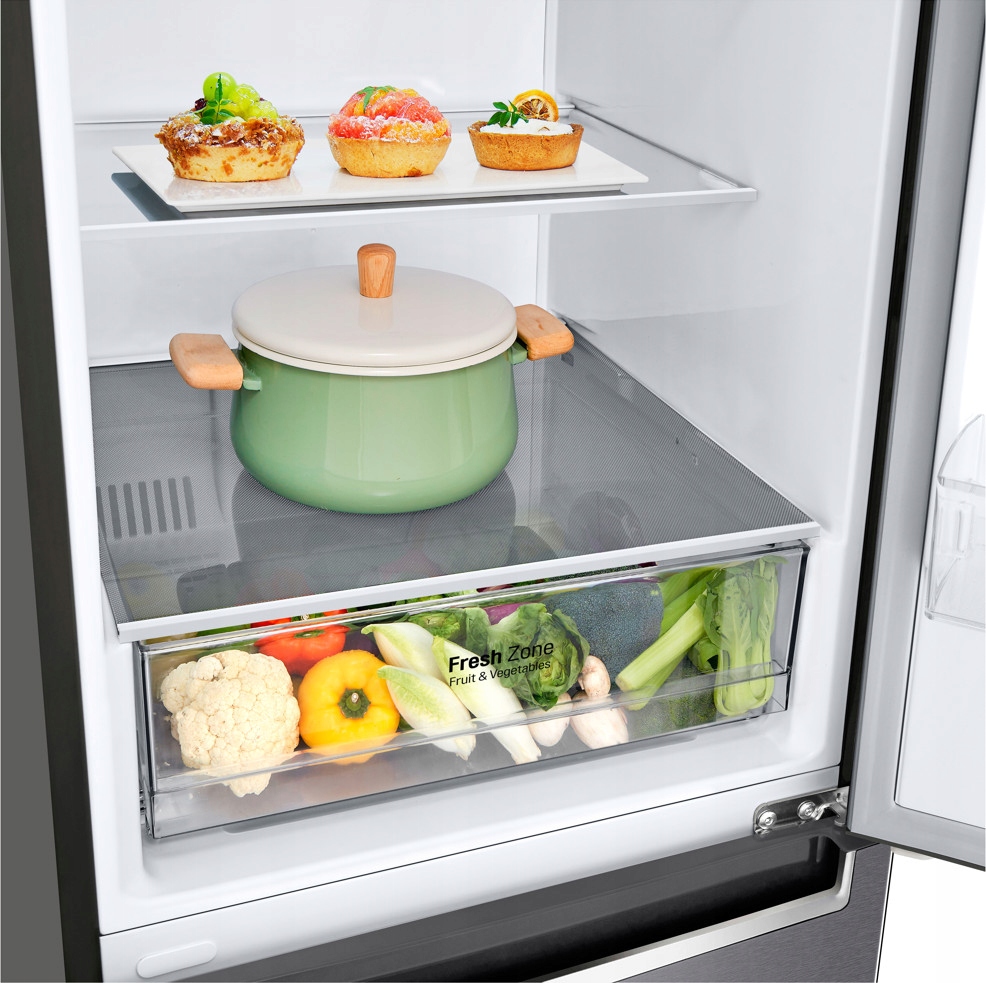 - Cechy dodatkowe: Fresh Zone|NoFrost|Oświetlenie LED|Pojemnik na jajka|Szuflada na warzywa i owoce