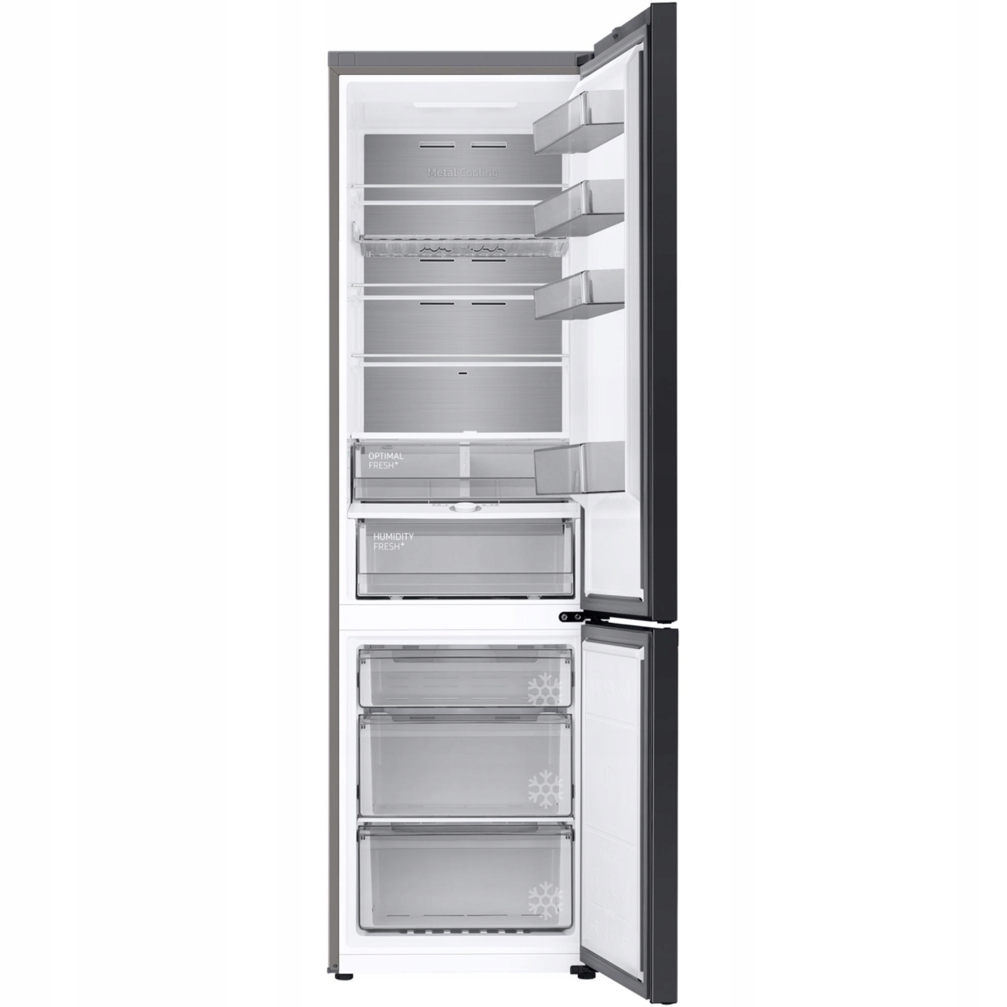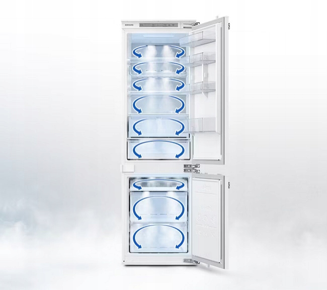 Technologia pełnego No Frost marki Samsung zapewnia stały obieg chłodnego powietrza, systematycznie usuwając nadmiar wilgoci z wnętrza lodówki. Dzięki temu lód i szron nie osadzają się na ściankach czy produktach. Żywność zachowuje świeżość i wartości odżywcze na dłużej, a utrzymanie czystości jest łatwiejsze – bez rozmrażania.