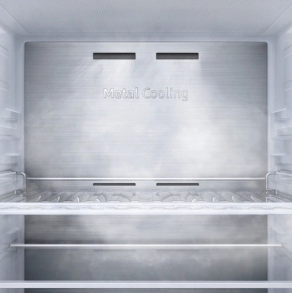 Technologia Metal Cooling to doskonała izolacja i niezwykła funkcjonalność chłodzenia. Specjalny panel tylnej ścianki urządzenia kumuluje niską temperaturę, dzięki czemu doskonale zatrzymuje zimno we wnętrzu lodówki nawet przy jej częstym otwieraniu. Zapewnia oszczędność czasu chłodzenia i energii.