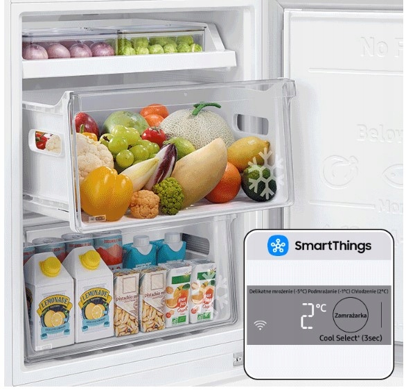 Strefa Cool Select+ pozwala dostosować lodówkę do aktualnych potrzeb dzięki możliwości dopasowania temperatury w zamrażalniku do konkretnego rodzaju żywności. Można zmienić zamrażalnik w chłodziarkę, jeśli jest taka potrzeba żeby przechować większe zakupy albo wybrać tryb schładzania czy lekkiego mrożenia. Wystarczy wybrać Chłodzenie (2°C), Podmrażanie (-1°C), Delikatne mrożenie (-5°C) lub Mrożenie (-15-23°C), aby dostosować je do swoich potrzeb.