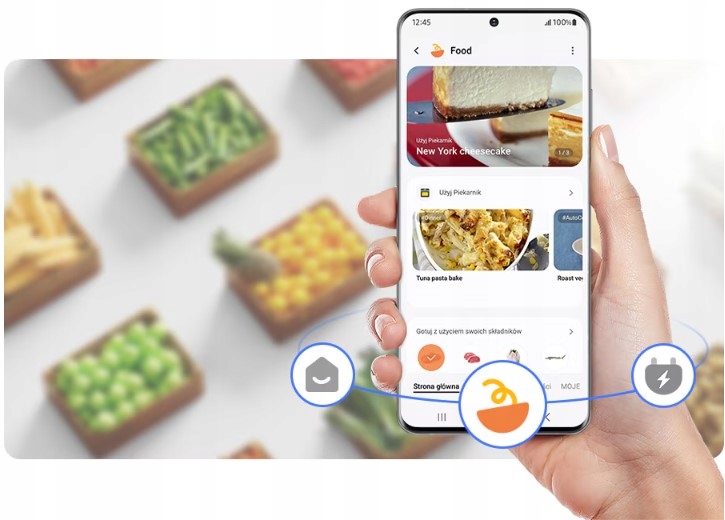 Świadomie planuj, gotuj i kupuj żywność. SmartThings Food* pozwala Ci stworzyć listę żywności w lodówce i zarządzać datami ważności, dzięki czemu możesz w każdej chwili sprawdzić, co masz. Poleca również spersonalizowane przepisy na podstawie Twoich preferencji i posiadanych składników.