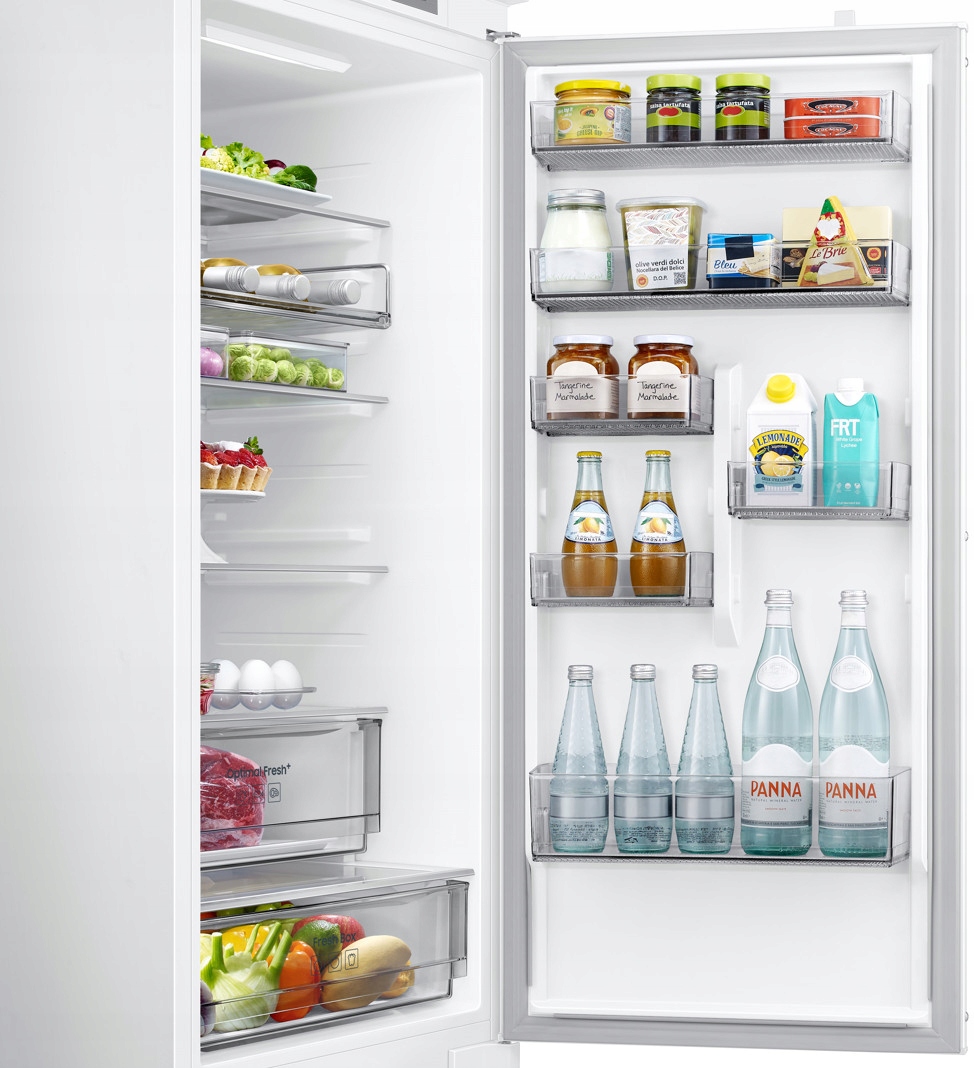Przechowuj więcej jedzenia w lodówce o pojemności 298 litrów w standardowej konstrukcji o głębokości 550 mm. Technologia SpaceMax™ zapewnia większą pojemność lodówki przy takich samych wymiarach zewnętrznych. Dzięki nowemu systemowi wydajnej izolacji ścianki urządzenia są cieńsze, co zapewnia więcej miejsca wewnątrz na produkty spożywcze.