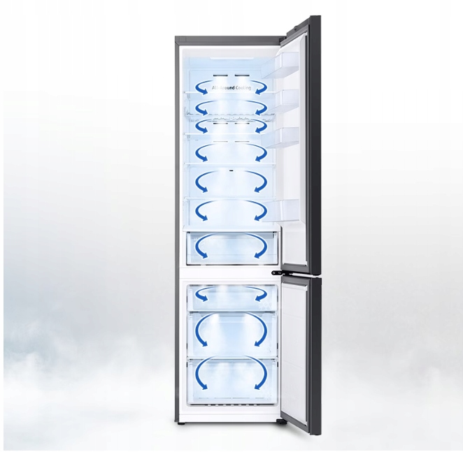 System All-Around Cooling delikatnie i równomiernie rozprowadza chłodne powietrze w całym urządzeniu. Nowa linia lodówek Samsung zapewnia skuteczniejsze i łatwiejsze chłodzenie na każdym poziomie. Precyzyjnie, szybko i bez tzw. martwych stref.