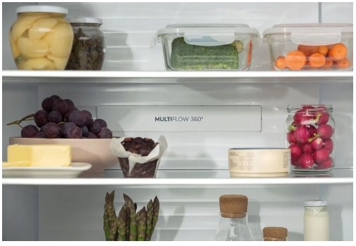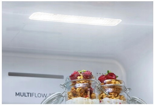 System wentylacji MultiFlow 360° równomiernie rozprowadza powietrze w komorze chłodziarki, aby zapewnić optymalną cyrkulację powietrza i najlepsze warunki przechowywania żywności.
