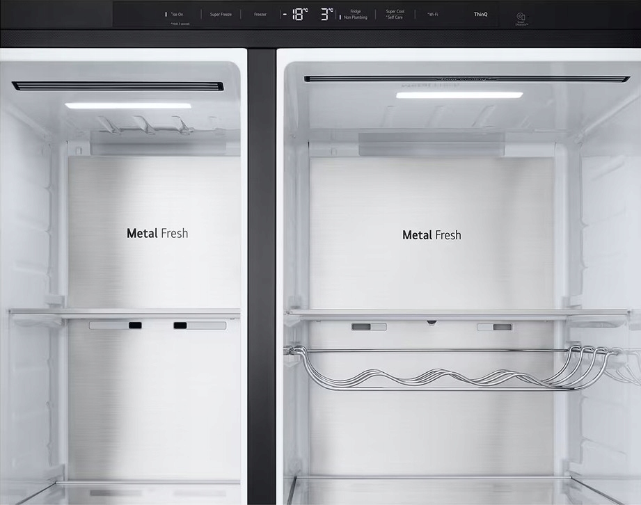 Nowa lodówka premium z drzwiami typu French Door wykorzystuje zaawansowaną technologię chłodzenia, utrzymując świeżość przechowywanych produktów na najwyższym poziomie.