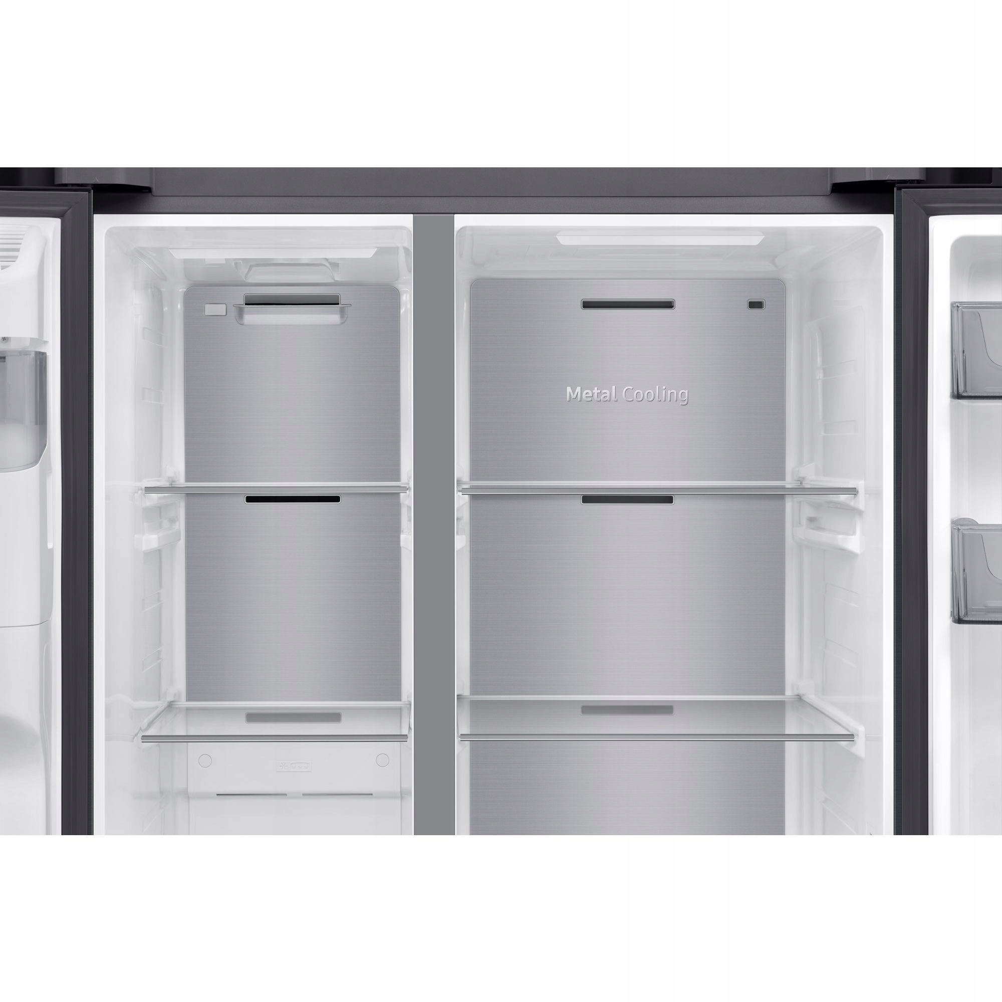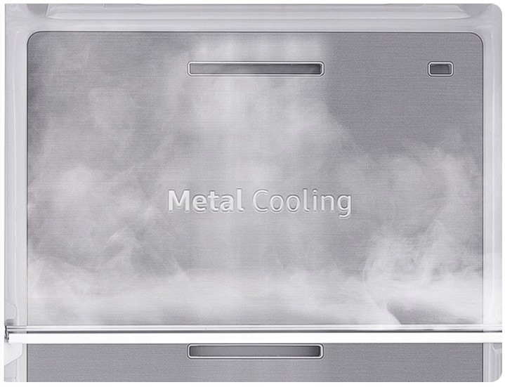 Technologia ta utrzymuje optymalną temperaturę wewnątrz lodówki, dzięki czemu żywność pozostaje świeża, nawet przy częstym otwieraniu i zamykaniu drzwi. Panel Metal Cooling na tylnej ścianie zatrzymuje zimno wewnątrz i pomaga przywrócić niską temperature. Dodatkowo nadaje lodówce elegancki wygląd i jest łatwy w czyszczeniu