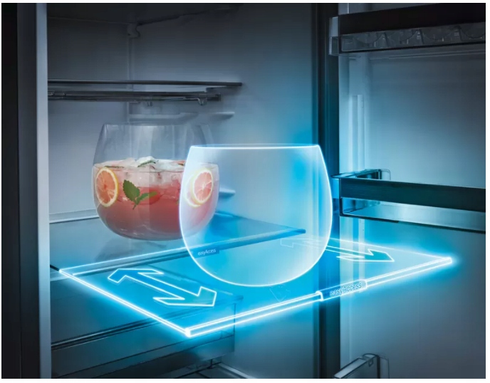 - Ilość półek: 5 z bezpiecznego szkła, z czego 4 x wysuwane półki easyAccess Shelf