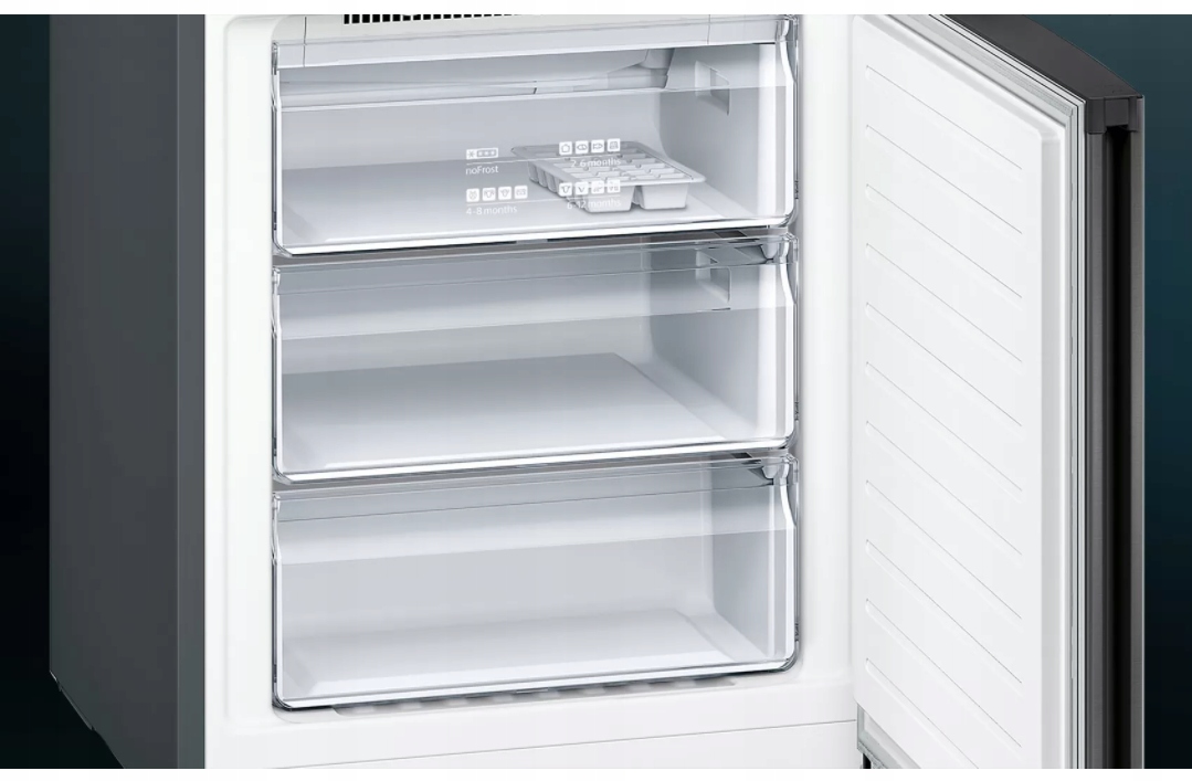 Ręczne rozmrażanie chłodziarki może być bardzo uciążliwe i czasochłonne. Dzięki naszym chłodziarko- zamrażarkom z funkcją noFrost, można na dobre skreślić tę czynność ze swojej listy zadań. Równomierny obieg suchego zimnego powietrza zapobiega tworzeniu się lodu w całym wnętrzu chłodziarko-zamrażarki. W rezultacie na tylnej ściance lodówki nie gromadzi się lód, a szuflady zamrażarki można zawsze łatwo otwierać i zamykać bez warstwy lodu. Technologia noFrost nie tylko zapobiega powstawaniu lodu, ale również eliminuje potrzebę ręcznego rozmrażania.