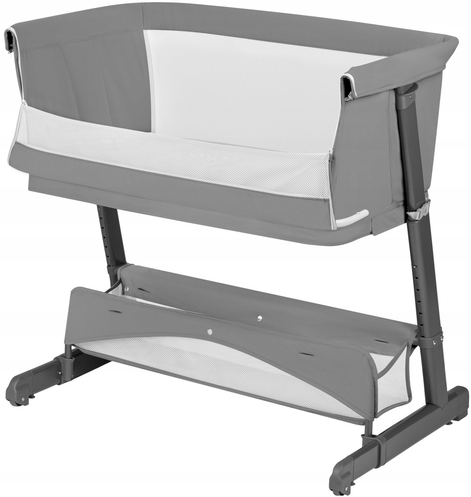 Funkcjonalny kosz na akcesoria pod łóżeczkiem ułatwia utrzymanie porządku, 2 kółeczka zwiększają mobilność, kiedy łóżeczko trzeba przesunąć w inne miejsce. Kąt nachylenia materaca można regulować, co przydaje się przy przeziębieniach i ulewaniu pokarmu.