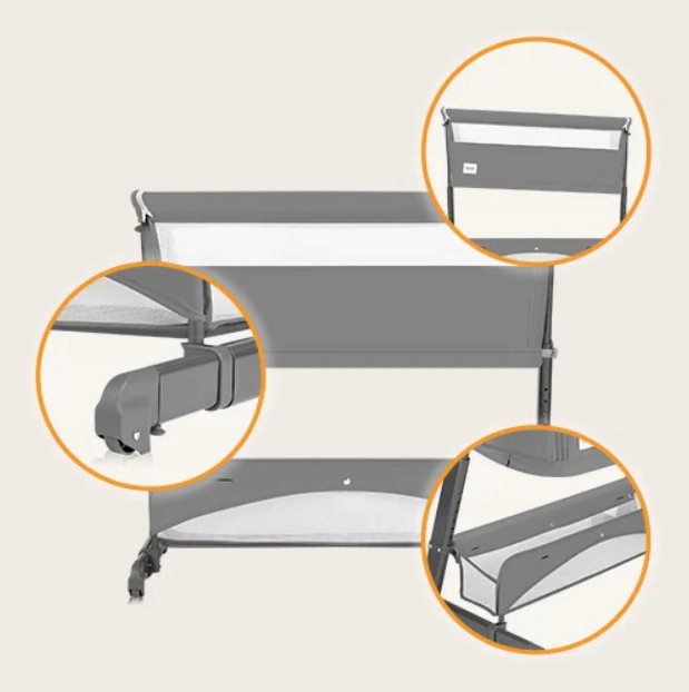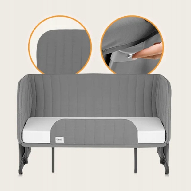 Kiedy zależy Wam na wspólnym odpoczynku, wystarczy rozpiąć boczną ściankę i użyć dołączonych do zestawu pasów montażowych, by powstało stabilne łóżeczko dostawne z łatwym dostępem do dziecka. Długość nóżek można regulować, by jak najlepiej dopasować ją do wysokości łóżka rodziców.