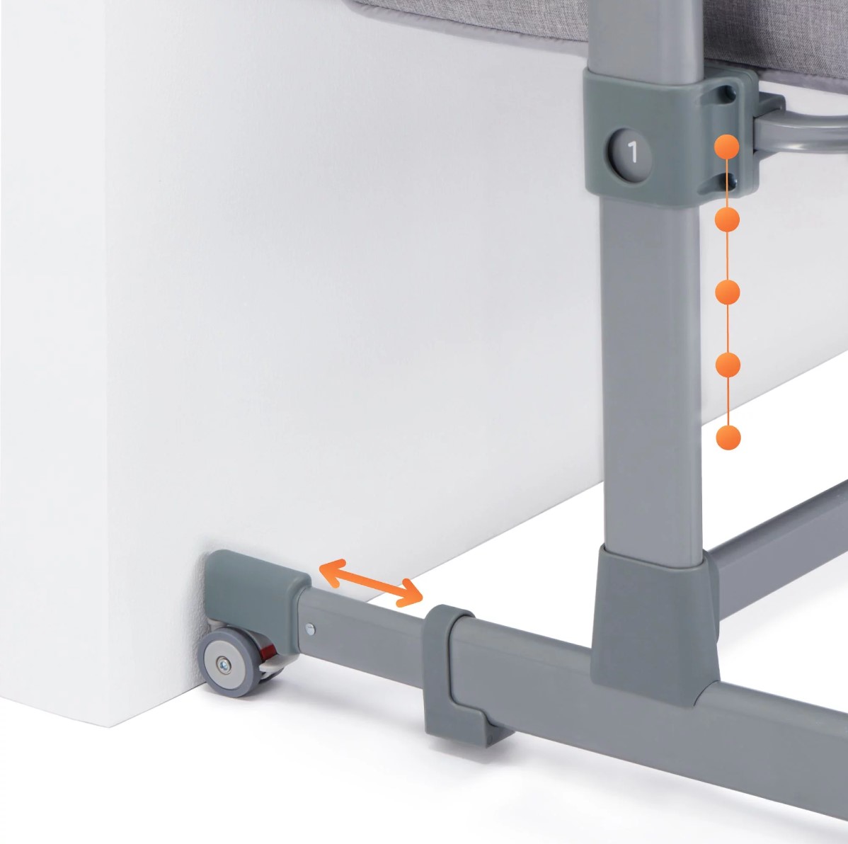 Nóżki w NESTE UP są regulowane - bez problemu dopasujesz ich długość do ramy łóżka. Wysokość łóżeczka można regulować w aż 5 stopniach - jeszcze lepiej dopasujesz NESTE UP do swojego łóżka.