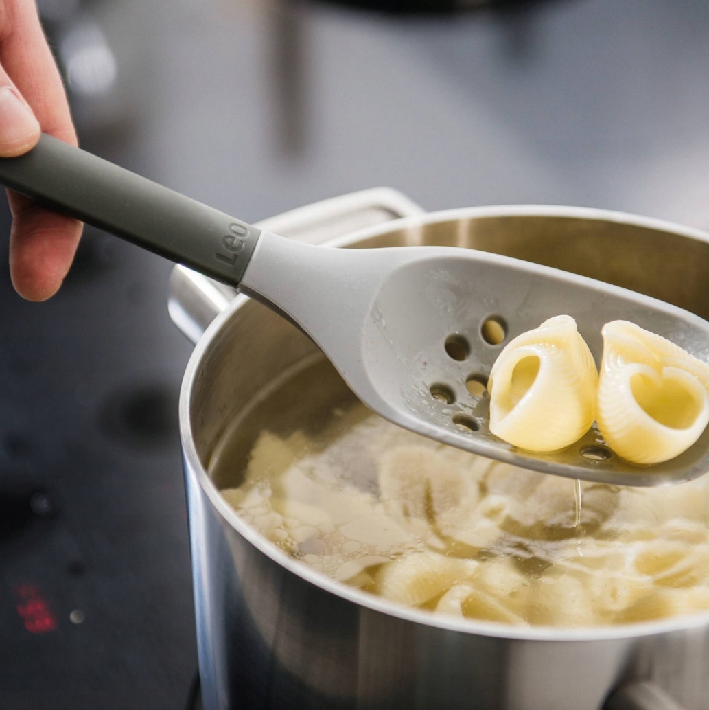 łŁyżka cedzakowa z silikonową obudową to idealne narzędzie do zbierania i odcedzania nadmiaru płynów z garnków i patelni bez zarysowywania delikatnej powierzchni naczyń kuchennych