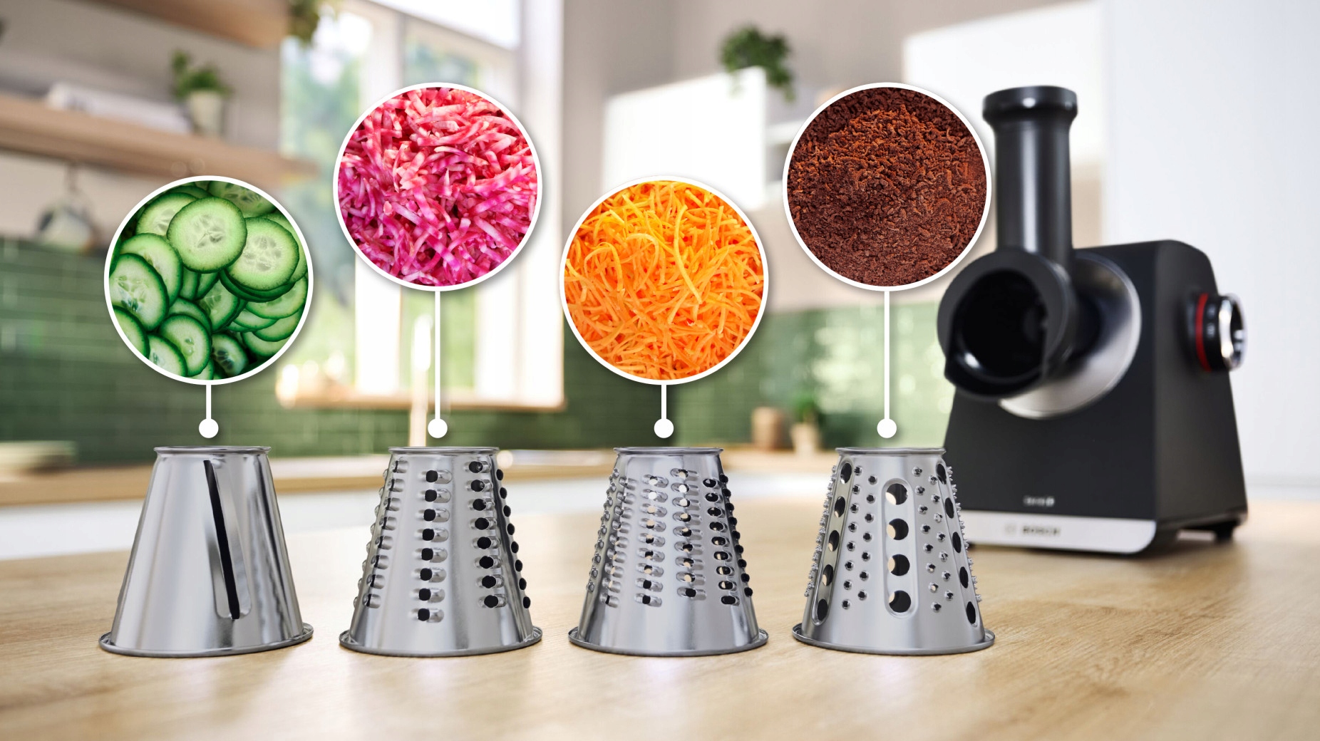 Oprócz mielenia mięsa przetworzysz szybko gotowane ziemniaki na kluski czy kopytka lub zamienisz suche pieczywo w tartą bułkę. Otwórz się na dania kuchni orientalnej lub stwórz własne, domowe kiełbaski w wersji mięsnej lub warzywnej. Niezawodna szatkownica z 4 bębnami umożliwi pokrojenie warzyw na różne sposoby. Przy jej pomocy zetrzesz również w mgnieniu oka surowe ziemniaki na placki ziemniaczane.