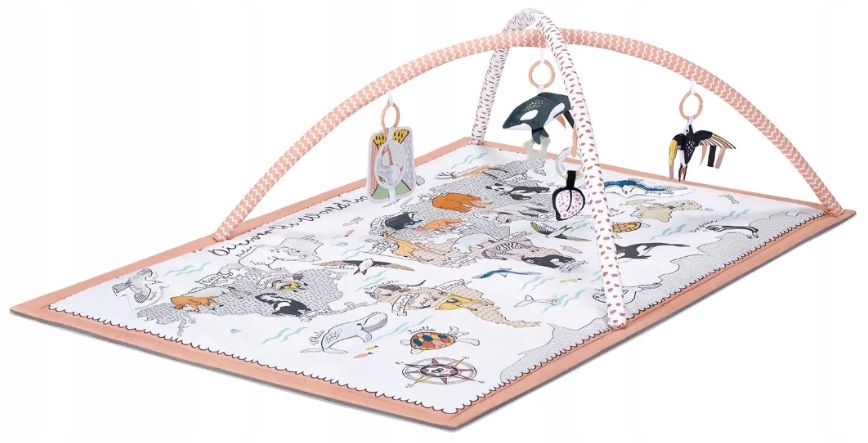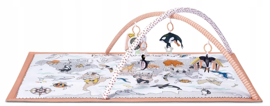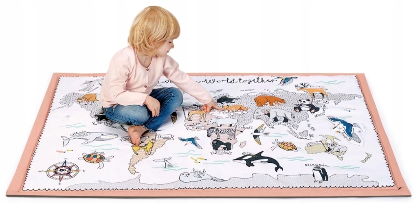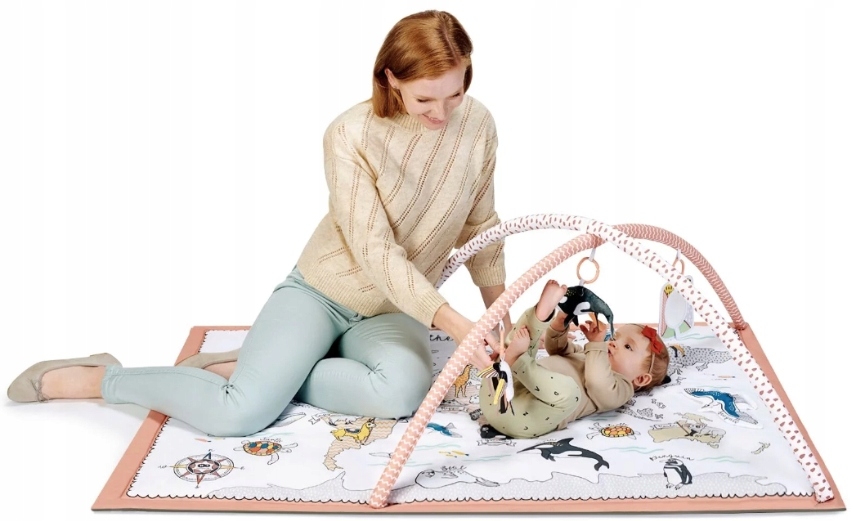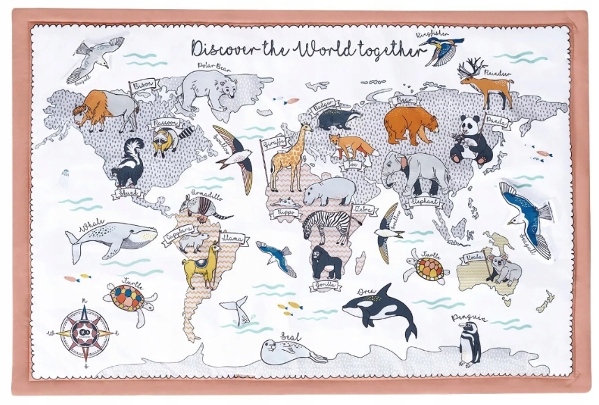 Mata TIPPY ma ciekawy wzór dla najmłdoszych oraz większą podstawę niż inne maty tego typu. Da maluszkowi jeszcze większą powierzchnię do zabawy. Na macie nadrukowane są kontynenty i zwierzęta, które je zamieszkują. Podpisane są w języku angielskim - w późniejszych latach pozwolą na swobodną i naturalną naukę języka angielskiego podczas zabawy.
