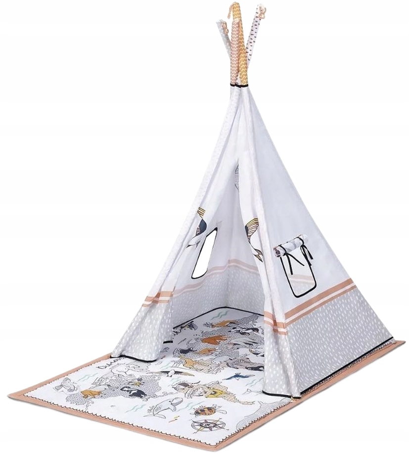 TIPPY to wyjątkowa mata edukacyjna o pięknym wzorze i nazwach zwierząt w języku angielskim, której można używać aż na 3 sposoby od pierwszych dni życia dziecka. Oryginalna stylistyka i dbałość o szczegóły sprawia, że mata doda wiele uroku każdemy dziecięcemu pokoikowi i będzie zmieniała się razem z pomysłami dziecka na zabawę. Najpierw będzie towarzyszyć maluchowi jako mata edukacyjna z miękkimi pałąkami i edukacyjnymi zabawkami - dziecko będzie doskonalić koordynację wzrokowo-ruchową. Potem, gdy malec podrośnie, skorzystajcie z namiotu tipi: to doskonała zabawa dla każdego dziecka, które już samodzielnie siedzi! Maluch będzie zachwycony namiotem z okienkiem, który posłuży Wam aż do czasów przedszkolnych. A w międzyczasie weźmiesz TIPPY ze sobą na spacer - jest gruba i duża, dzięki czemu posłuży Wam jako koc piknikowy.