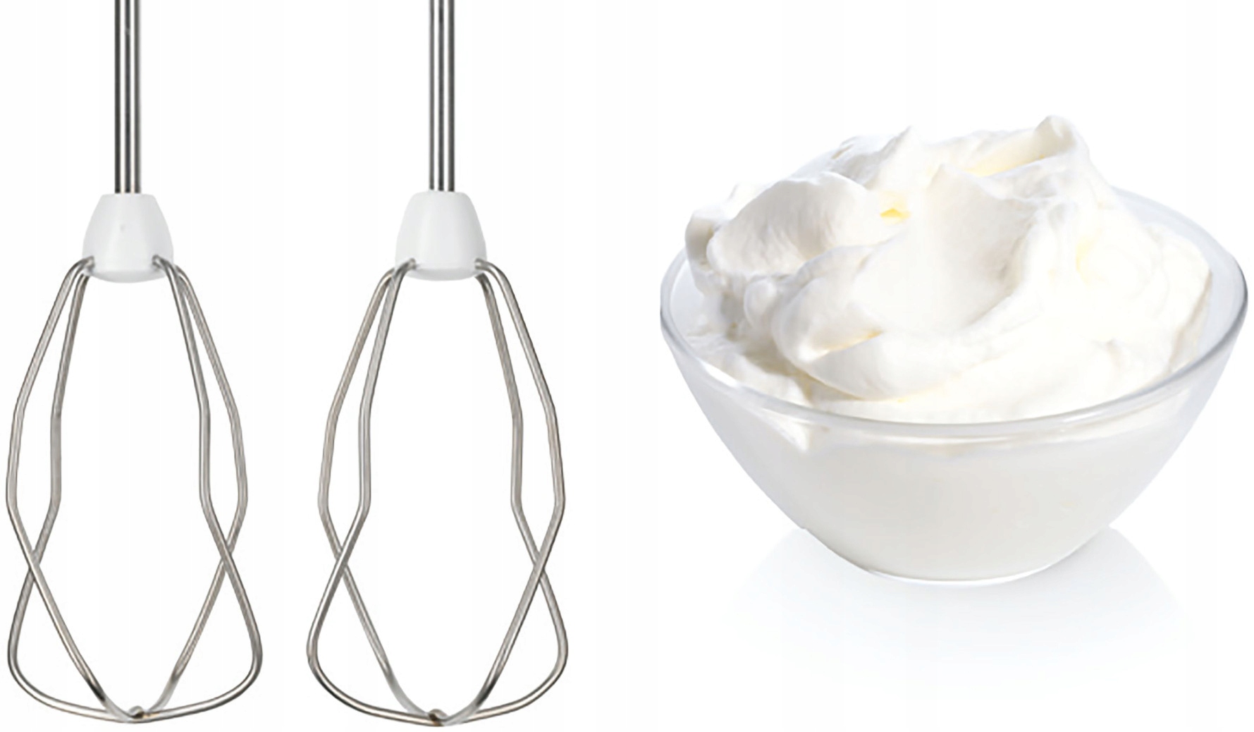 - Zawarte akcesoria: 1 x Miska do mieszania z tworzywa sztucznego, 1 x Stojak, 2 x Mieszadlo turbo